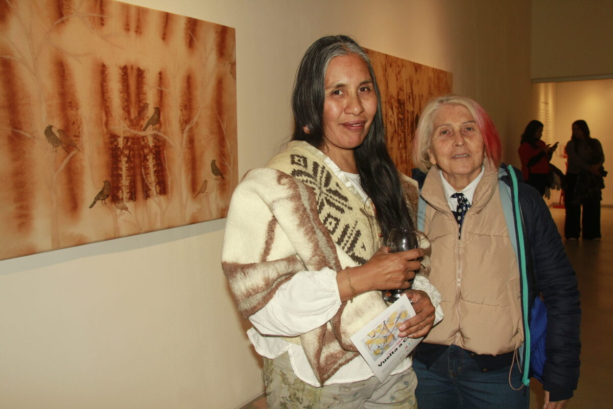 La artista trabaja con tintes naturales obtenidos de hojas, cáscaras, agua de deshielo y desechos orgánicos recolectados con cuidado; cada pigmento es fruto del tiempo, de la paciencia y de la relación profunda con la naturaleza (Lali Tinte Co-curadora).